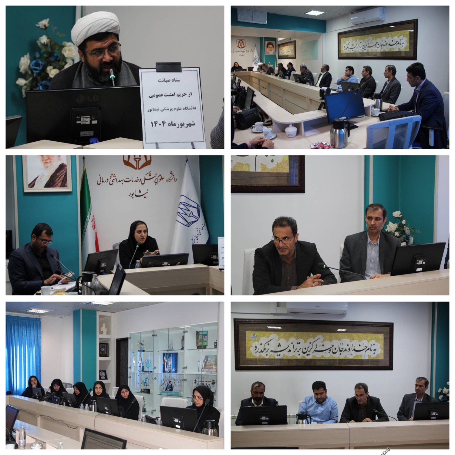 نشست ستاد صیانت از حریم امنیت عمومی دانشگاه علوم پزشکی نیشابور با حضور دکتر غزاله دوستپرست رئیس دانشگاه، حجتالاسلام و المسلمین مهدی قربانی، مسئول نهاد نمایندگی رهبری و دیگر اعضای ستاد برگزار شد. محور اصلی این جلسه بر رعایت پوشش و رفتار حرفهای در محیط اداری برای کارکنان و دانشجویان تمرکز داشت.