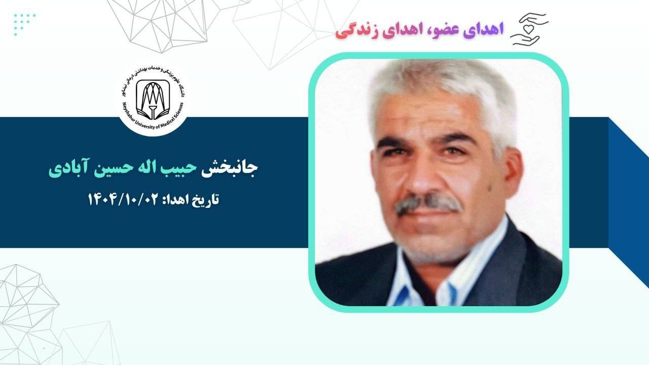 معاون درمان دانشگاه علوم پزشكی نیشابور گفت: زنده یاد حبیب الله حسین آبادی، ۶۶ ساله که در اثر خونریزی مغزی دچار مرگ مغزی شده بود برای اهدای اعضا اعزام شد.