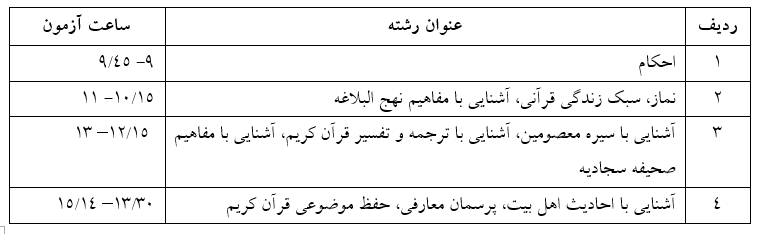 زمان برگزاری آزمون مرحله دانشگاهی بخش معارف قرآنی بیست و پنجمین جشنواره قرآنی هدهد دانشگاههای علوم پزشکی کشور، روز سه شنبه ۲۲ مهرماه ۱۳۹۹ و به شرح ذیل میباشد: