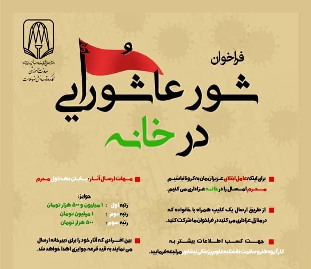 فراخوان شور عاشورایی در خانه به منظور هر چه بهتر و پرشورتر برگزارشدن محرم از شیفتگان و دلدادگان امام حسین (ع) دعوت مینماید تا با برپایی مراسم عزاداری در منزل خود از رفتن به مساجد و هیئت های عزاداری خودداری نموده و جان خود و سایر عزاداران حسینی را به خطر نیندازیم.