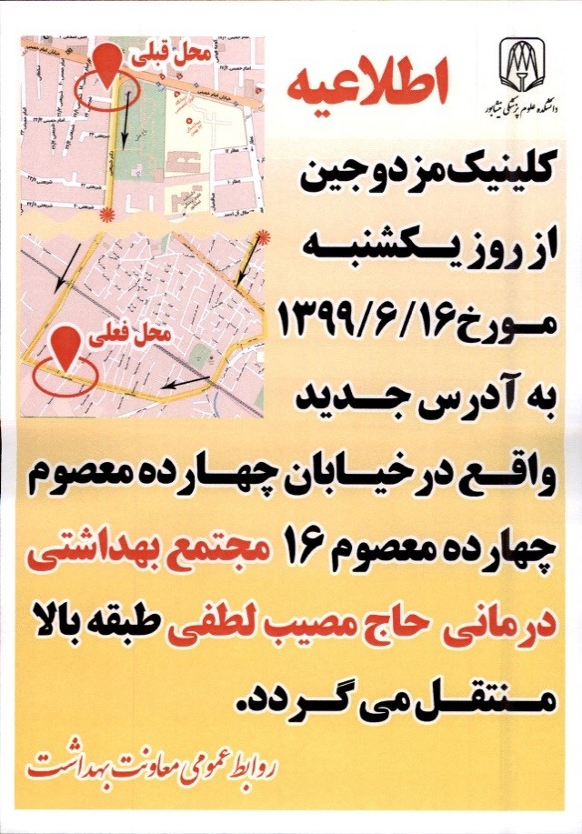 سرپرست گروه سلامت جمعیت، خانواده و مدارس معاونت بهداشت از جابجایی و تغییر محل کلینیک مزدوجین از تاریخ شانزدهم شهریور ماه خبر داد.