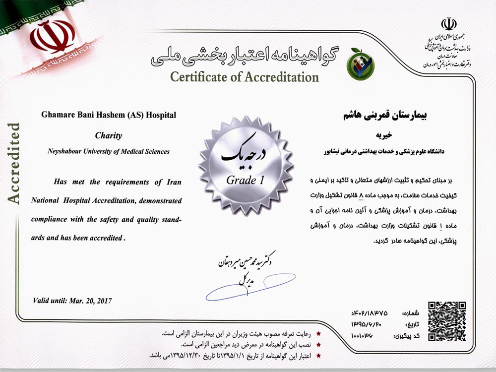 گواهینامه های اعتبار بخشی جزئیات مجموعه: معاونت درمان نوشته شده در پنج شنبه, 19 شهریور 1394 08:46 بازدیدها: 498 گواهی نامه اعتبار بخشی سال 1394 بیمارستان خیریه قمر بنی هاشم گواهی اعتبار بخشی سال 1394 بیمارستان 22بهمن
