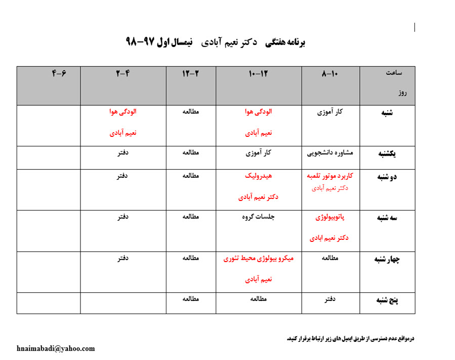 نام و نام خانوادگی : ابوالفضل نعیم آبادی تاریخ تولد: 1360 عضو هیات علمی پیمانی با پایه 9 شماره تماس:9151507861 آدرس: نبشابور دانشگاه 3/11 دکترای مهندسی بهداشت محیط دانشگاه علوم پزشکی جندی شاپور اهواز