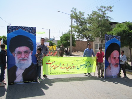 دکتر تقی آبادی گفت : در این مراسم باشکوه  که یکی از وظایف مسلمانان بر علیه قدرتهای ظالم جهان بخصوص اسرائیل و آمریکا و دیگر دست نشاندهایش  همچون گروه های تکفیری و داعش پرسنل شبکه بهداشت و درمان فیروزه نیز با حضور پررنگ خود در راهپیمایی روز جهانی قدس با شعارهایشان این حکومتها را محکوم نمودند و در پایان در فرضیه الهی نماز جمعه شرکت نمودند.
